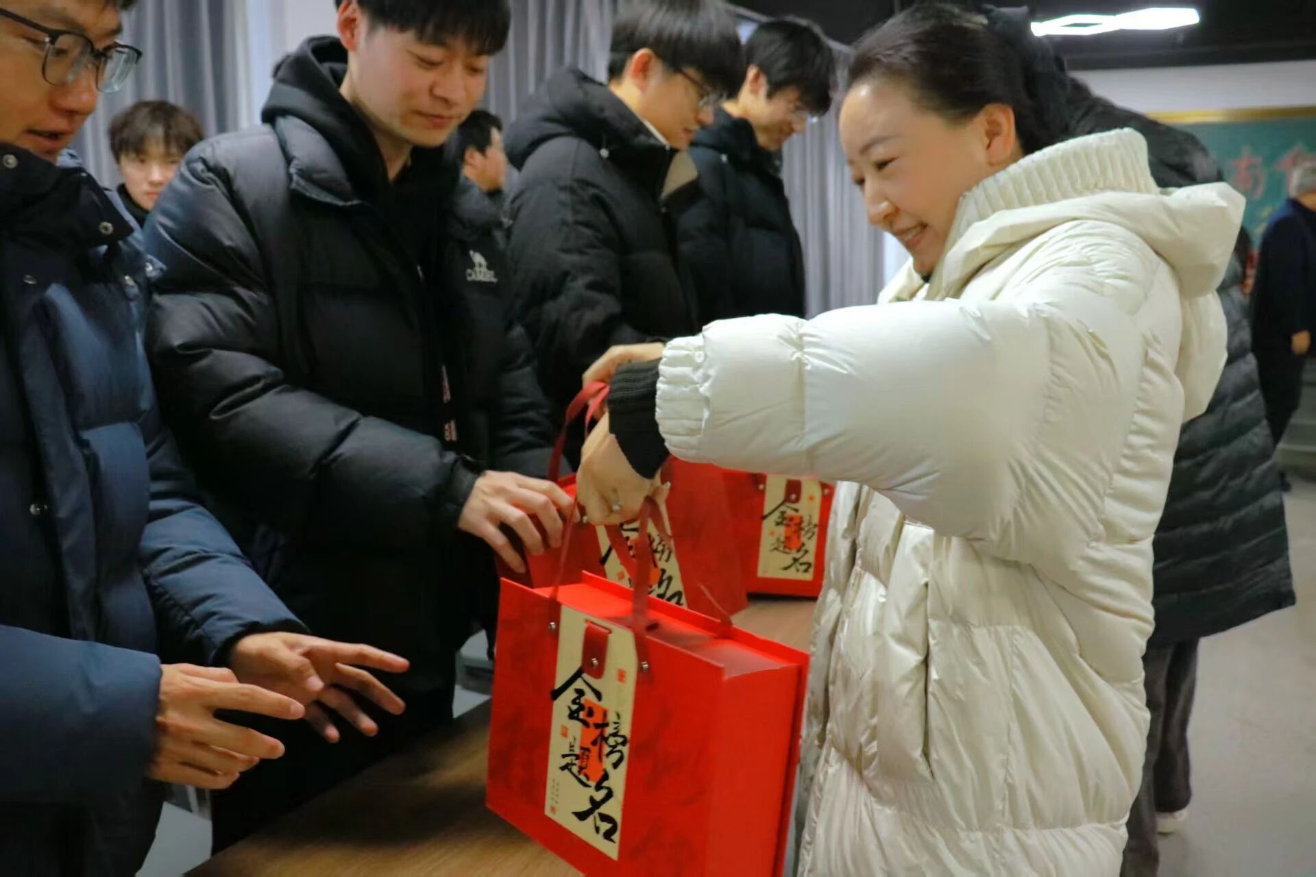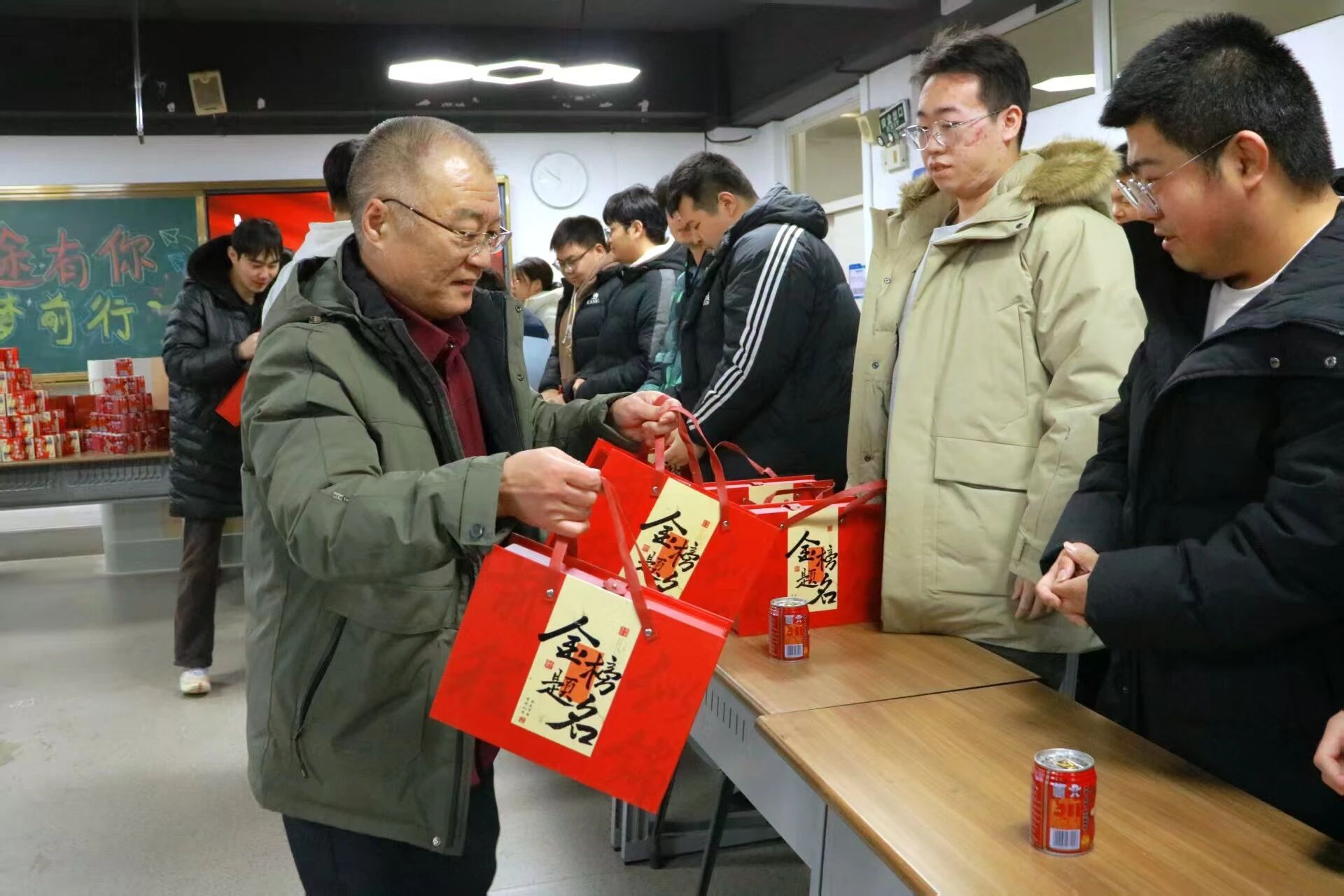 随后,学院领导与辅导员老师们为每位学子送上“考研冲刺助力礼包”,内含备考文具、能量零食、定制姓名旺仔牛奶等物资,传递学院的贴心关怀与美好祝愿。学子们精神饱满、斗志昂扬,纷纷表示将牢记嘱托,不负期望、全力以赴。