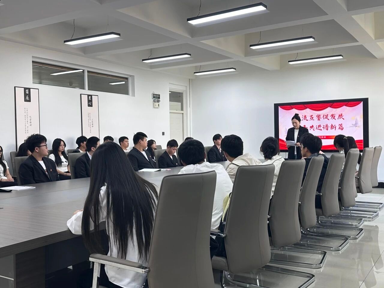 实地见学后,双方在明德楼515会议室进行学习交流,分为“专题党课”与“学生干部交流”两个环节。