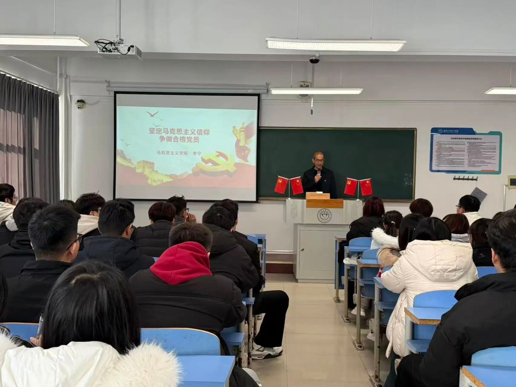 开班仪式结束后,学院邀请马克思主义学院李宁老师以“坚定马克思主义信仰 争做合格党员”为题开展首堂党课。李老师从马克思主义信仰在中国的确立、当代中国马克思主义信仰面临的挑战及其深层原因、从根本上克服马克思主义信仰缺失的现实路径选择以及大学生应如何坚定马克思主义信仰四个方面,结合鲜活案例与理论深度,为学员们系统阐释了信仰的力量与实践要求,内容既有理论高度,又有现实温度,为学员们筑牢信仰根基提供了有力指导。